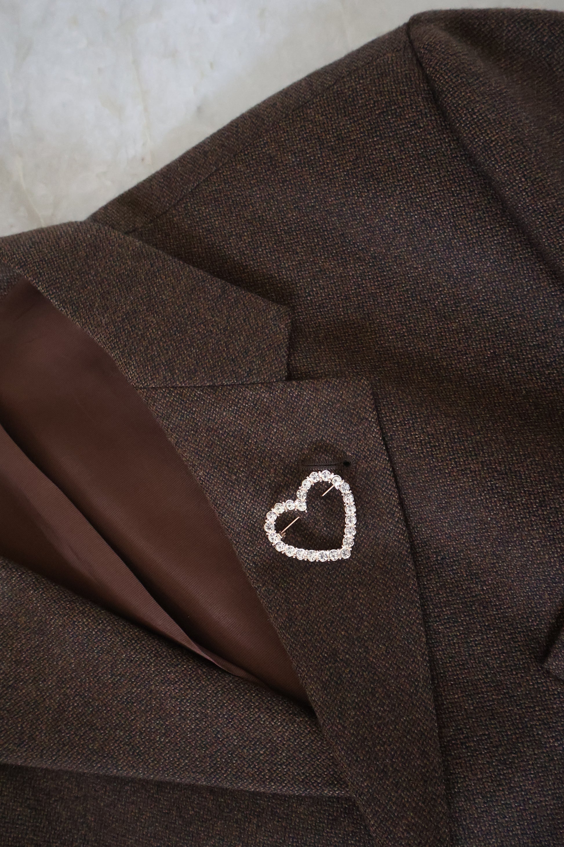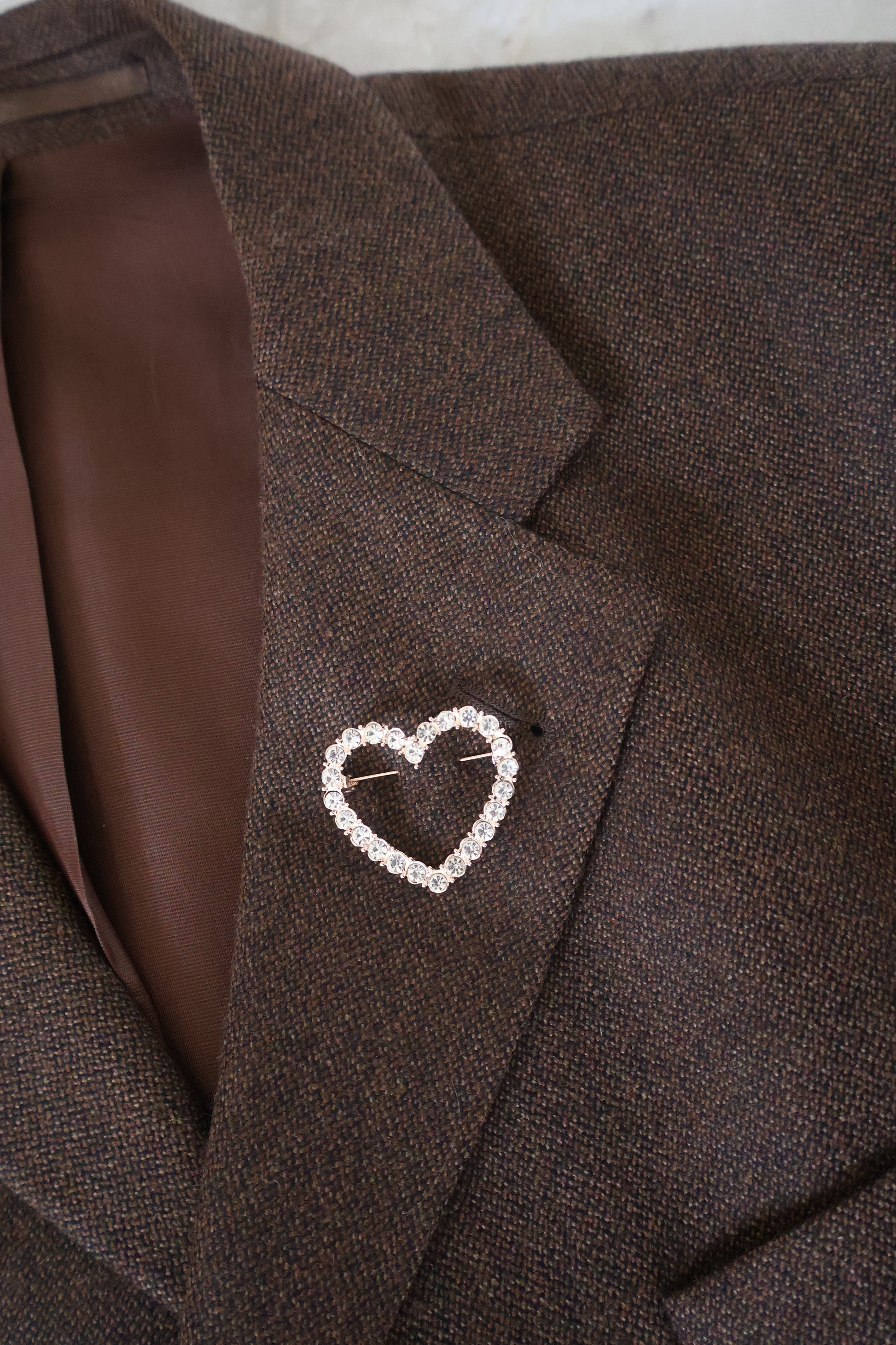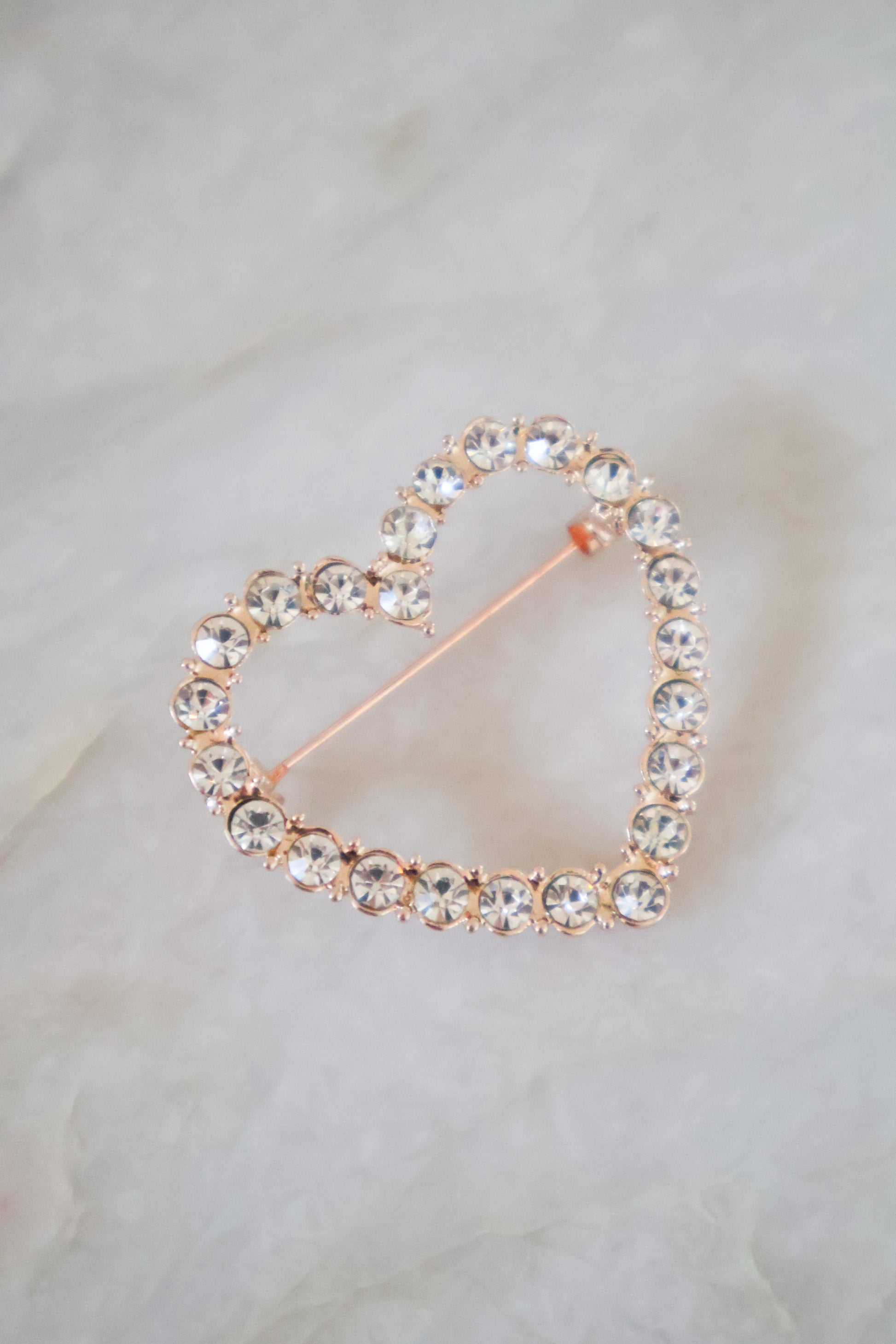 Gouden broche met een hartje en steentjes