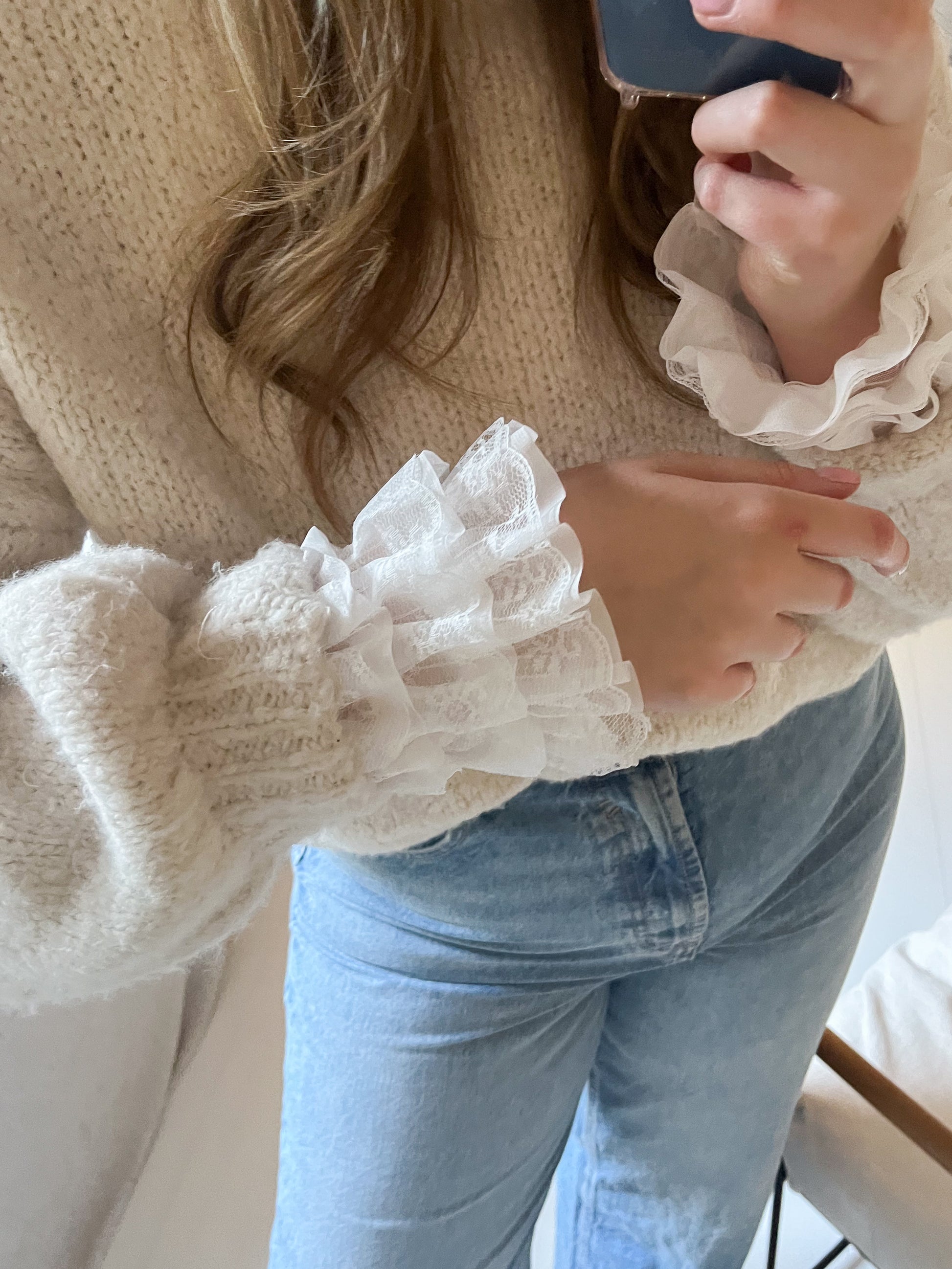 Hoe leuk zijn onze handgemaakt mouwtjes? Geef je outfit een extra touch. Te dragen onder bijvoorbeeld je blazer, trui en blouse.